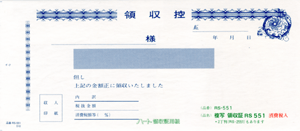 RS551 (201× 88mm / 複写式 / 1枚目・・・控え / 2枚目・・・お客様渡し) |