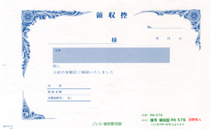 RS576 (208 × 131mm / 複写式 / 1枚目・・・控え / 2枚目・・・お客様渡し) |