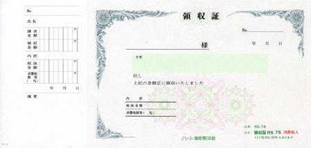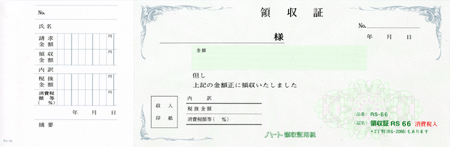 | RS531 (208 × 98mm / 複写式 / 1枚目・・・控え / 2枚目・・・お客様渡し) | |||