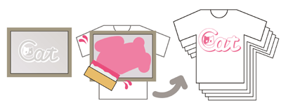シルクのシートで版を作り、専用のヘラでウェアに直接インクを刷り込むプリント方法です。